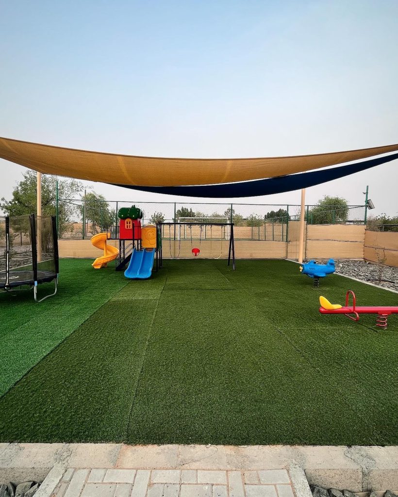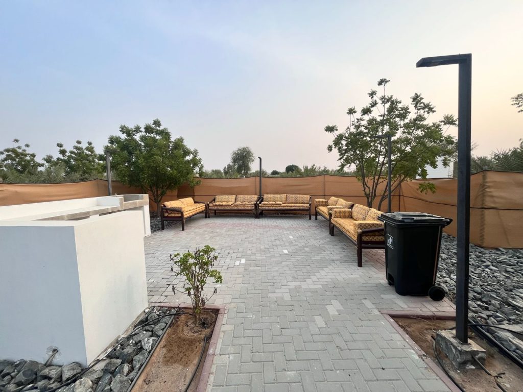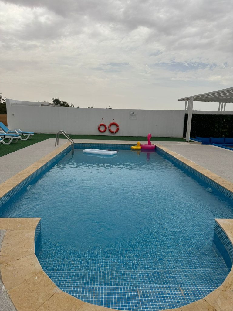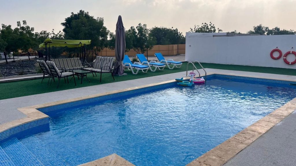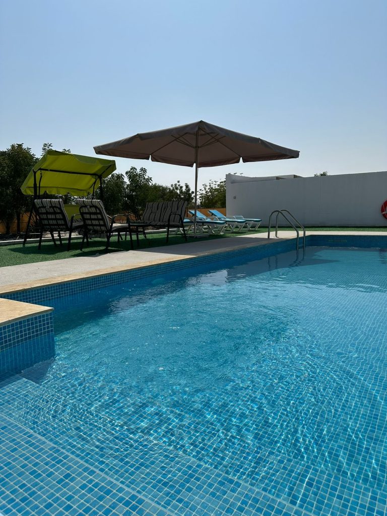 Immerse yourself in the tranquility of Falaj Hub, a haven nestled in the heart of serene beauty. It's the perfect destination for those yearning for an idyllic retreat. This luxurious 3-bedroom holiday home offers a harmonious blend of comfort, recreation, and natural beauty. Take a refreshing dip in the pool, engage in a friendly match on the football field or billiards table, and watch your kids having fun at the kid's playing area; enjoy the traditional tent, BBQ area, and multiple seating spots.
