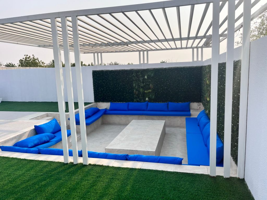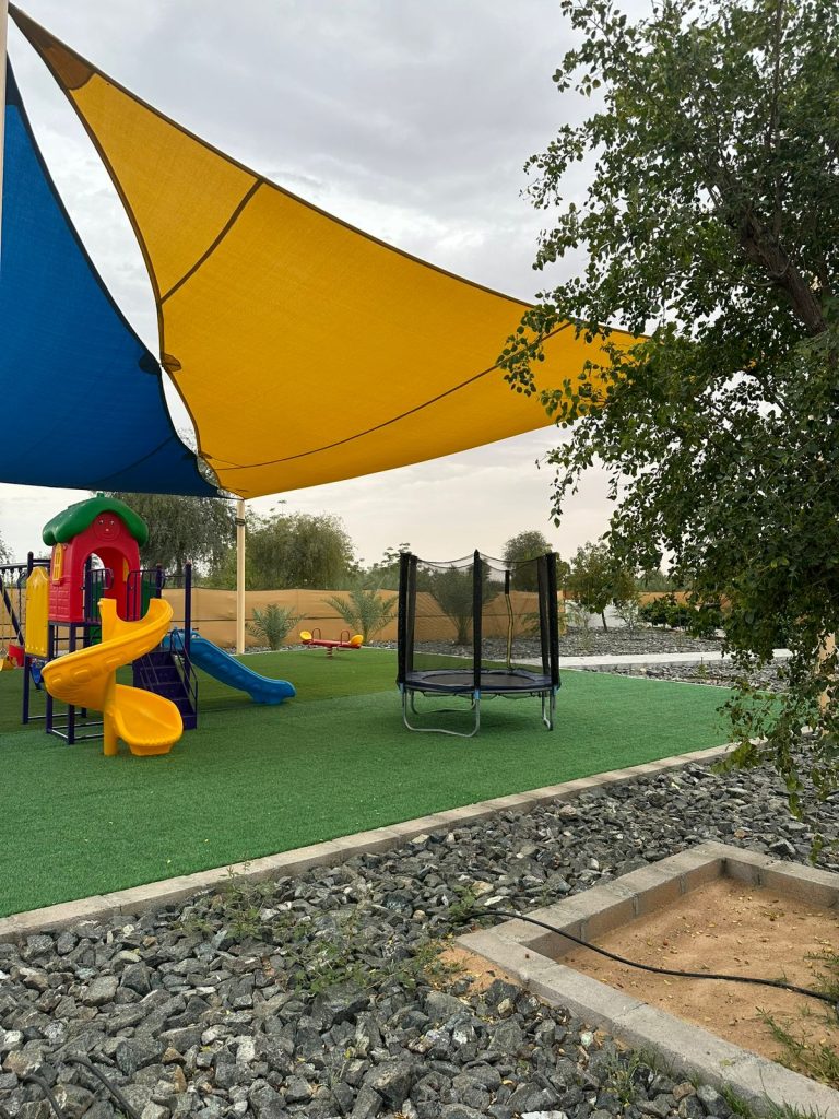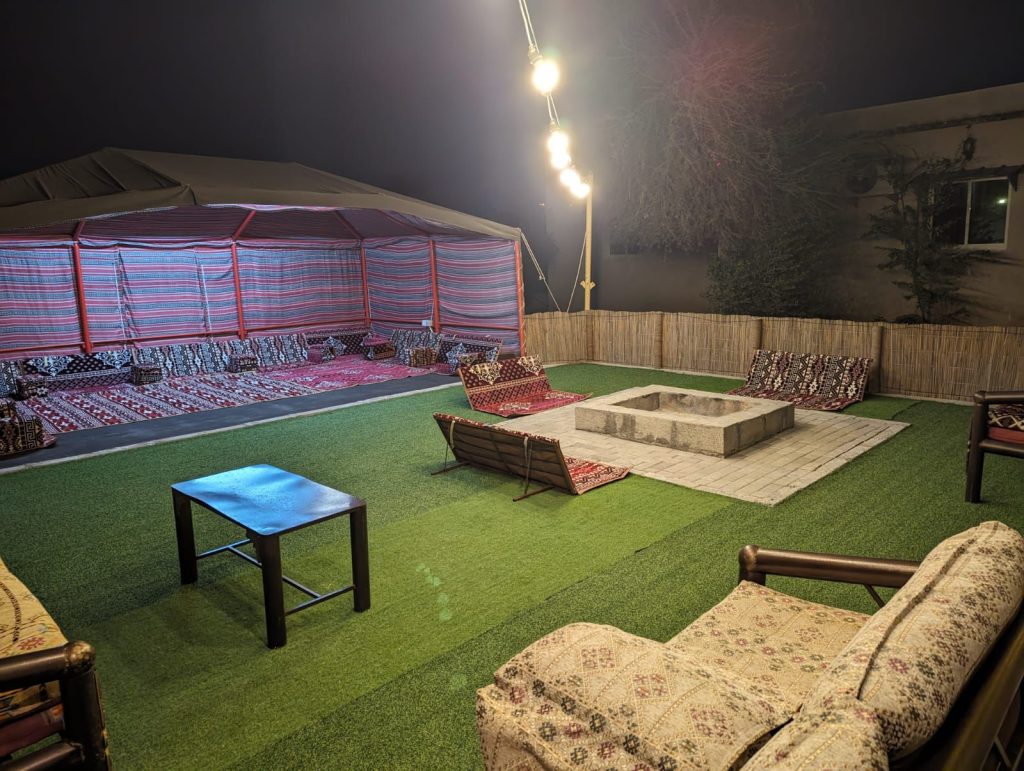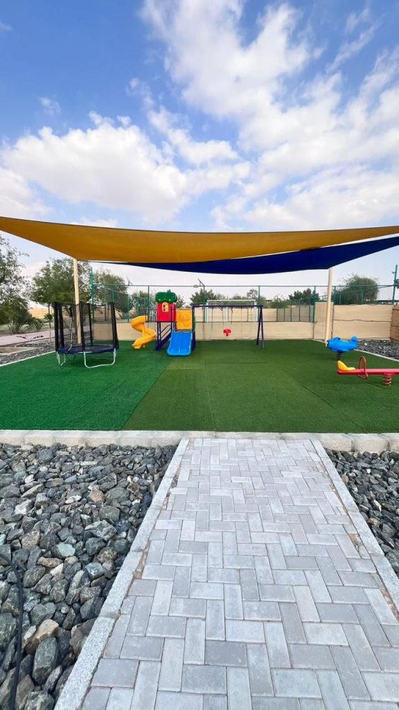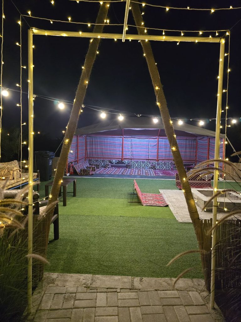 Immerse yourself in the tranquility of Falaj Hub, a haven nestled in the heart of serene beauty. It's the perfect destination for those yearning for an idyllic retreat. This luxurious 3-bedroom holiday home offers a harmonious blend of comfort, recreation, and natural beauty. Take a refreshing dip in the pool, engage in a friendly match on the football field or billiards table, and watch your kids having fun at the kid's playing area; enjoy the traditional tent, BBQ area, and multiple seating spots.