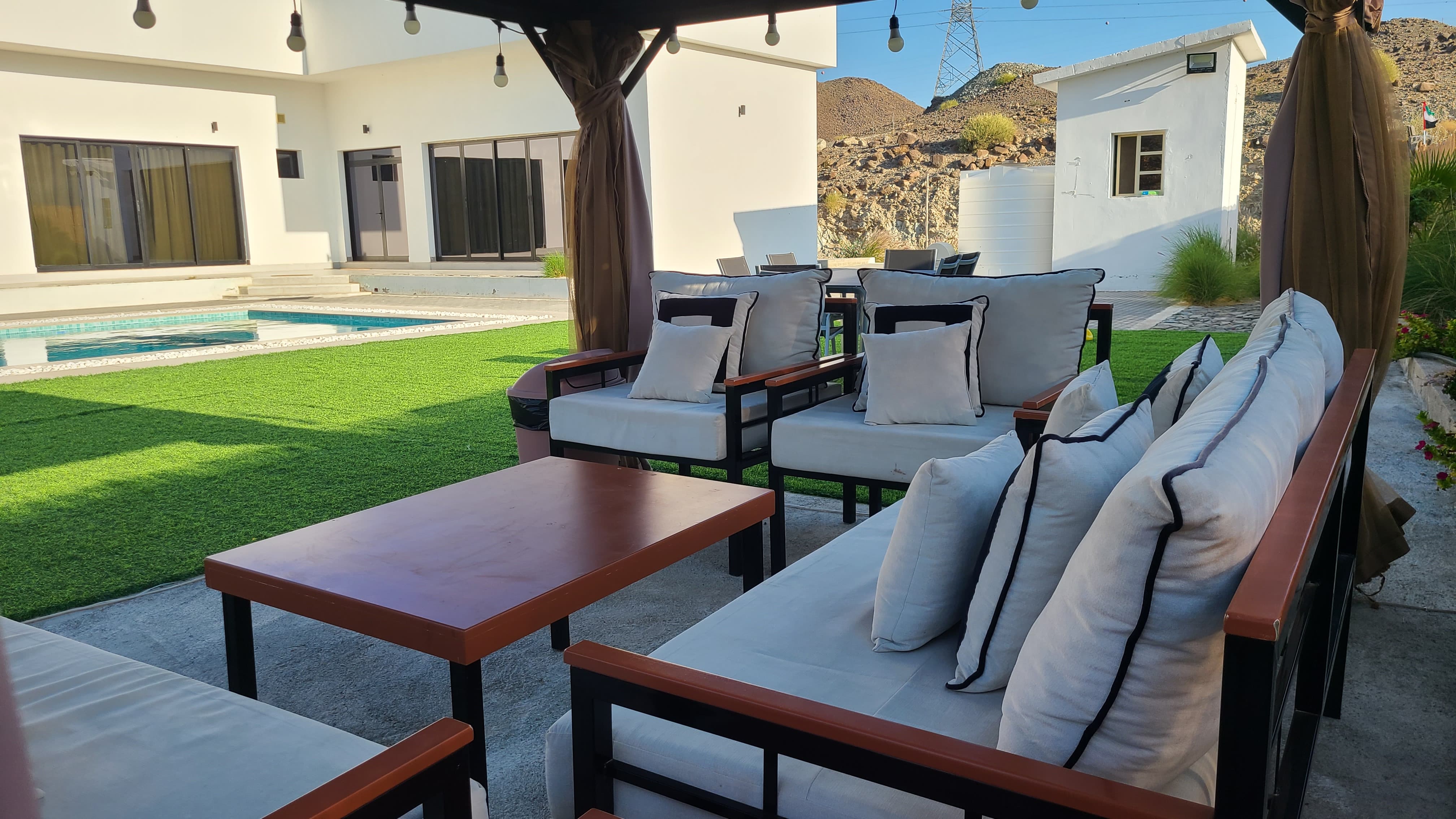 • The Majlis & Seating: A separate outdoor Majlis featuring its own bathroom and toilet provides a traditional and private space for gatherings, alongside multiple outdoor seating areas designed for sunset viewing.