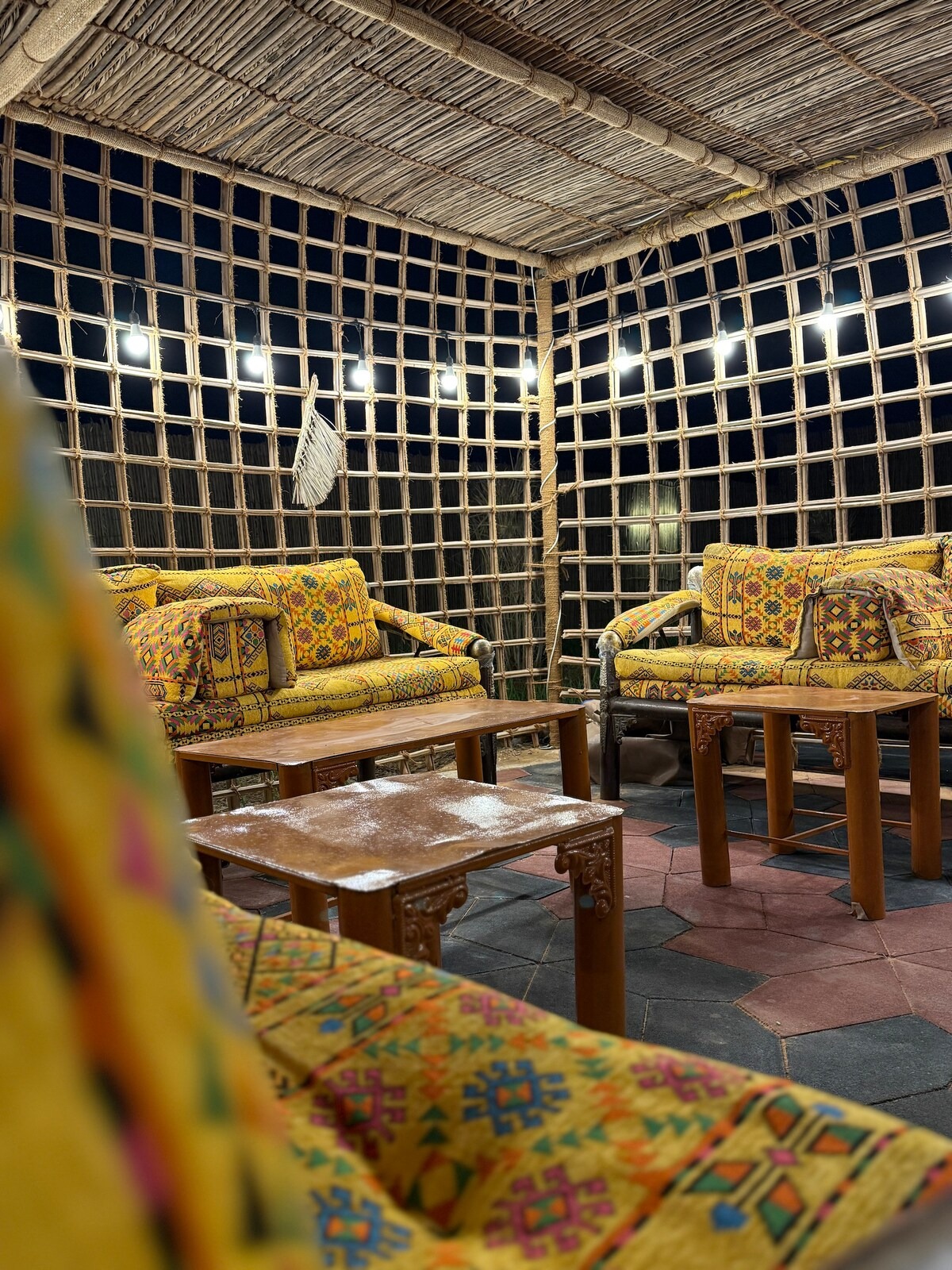 Outdoor Living: Relax in our traditional outdoor seating area, perfect for cooler evenings.